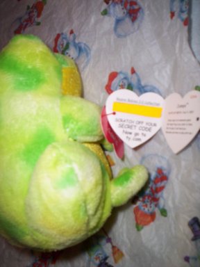 "You will not want to use this procedure on valuable BB 2.0s." Bean Watcher Tag: See Hang Tag or Heart Tag . Tag Protectors: See Locket Tush Tag: The Tag found on a Ty products bottom or tush (behind). Canadian Beanies have two Tush Tags. 2006 Tush Tags at Ms. Janie's. Tush Tags at Collectible Treasures. Ty$: Ty$ known as Ty dollars is virtual money earned by playing games on the Ty Girlz web site. The Ty$ virtual money can be spent in the virtual Mall there. Ty Girlz: The Ty Girlz range from Ty known as Ty Girlz are dolls made of fabric with no "beans" or plastic pellets, that are found in many other Ty products. In the real world, their hair that feels real and is combable. Each doll stands 14" tall and has her own unique look. Ty Girlz whose outfits are sewn to their bodies, have virtual lives online. Ty Girlz online virtual world is where doll owners can interact with other owners of Ty Girlz dolls. Each Ty Girlz doll has a secret code inside their hang tag than can only be used by the initial owner who logs in with it on the interactive site. Their online virtual world has a virtual home, "My Room" and a Mall. In the virtual Mall there is a Bank with Ty dollars, Ty$. The Mall shops include the Bank, Threadz, the clothing store, Salon Sassy, the hair salon and Diva Decor, the furniture store. Virtual clothing, accessories and furniture can be purchased in the stores. New virtual hair dos can be had at the salon, no appointments are neccesary. The site also has a Chat Club and an Arcade as well.