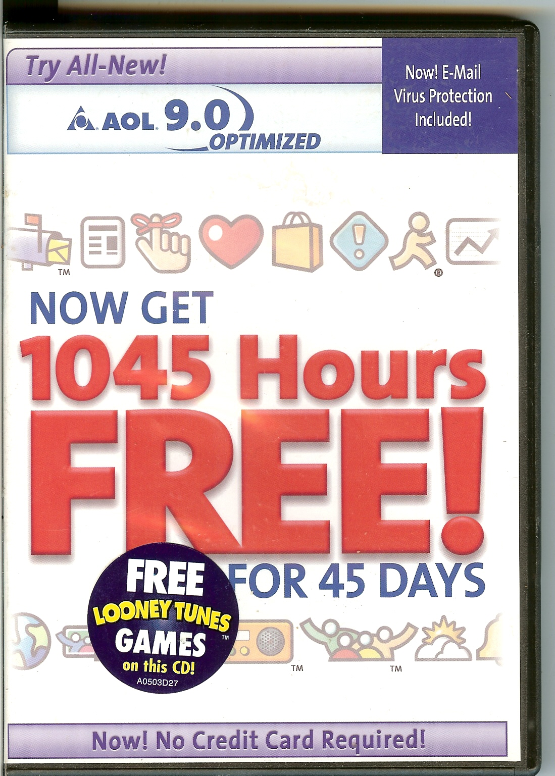 | 1 | AOL 9.0 Optimized | CD in CD/DVD Case No Credit Card Free Looney Tunes Games On This CD | $3.95 2 Registrations & 2 Passwords |  | $3.50 |
