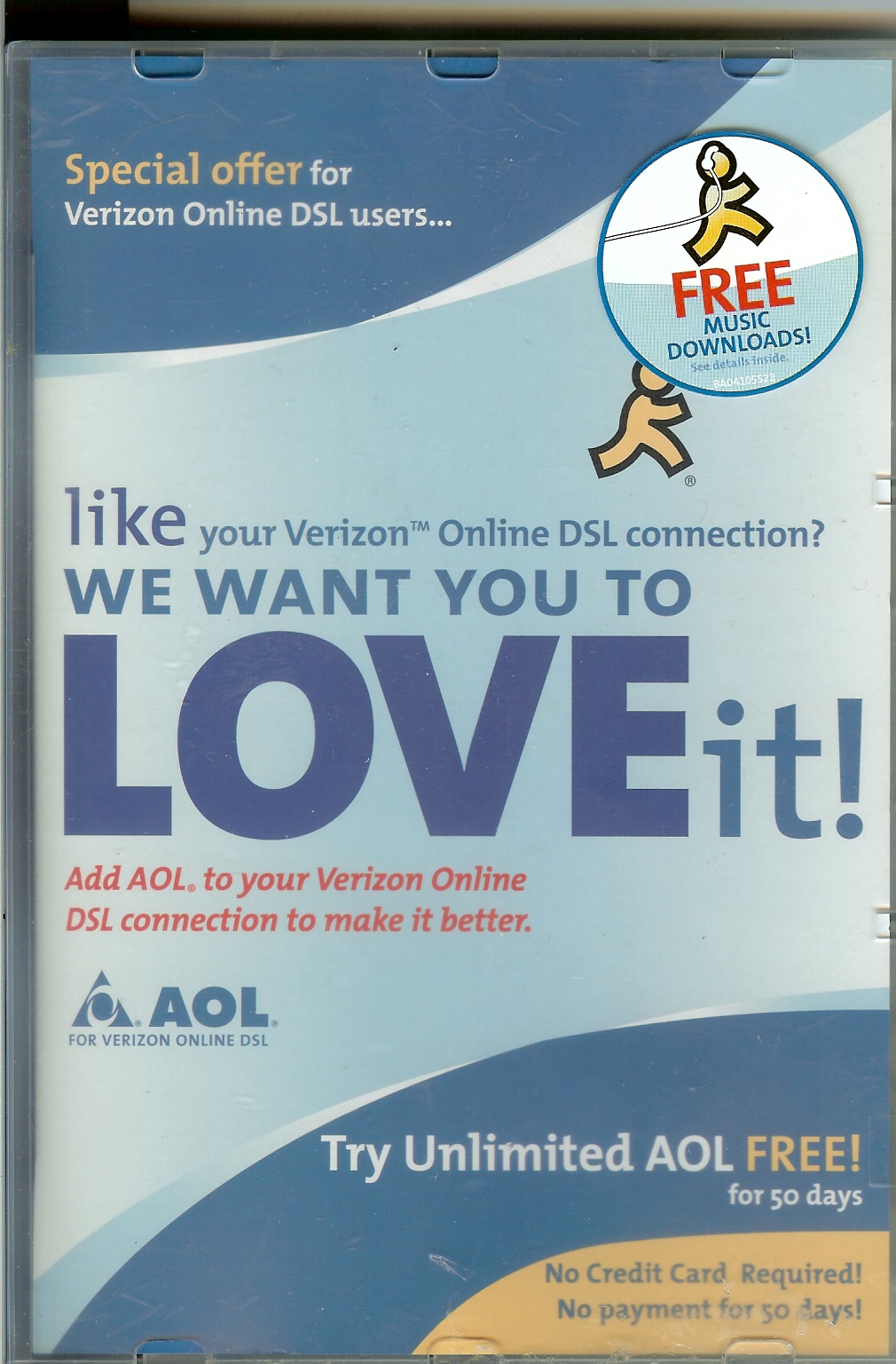 | 1 | AOL | CD in Clear CD/DVD Case No Credit Card Verizon Offer 2 Registrations 2 Passwords | $2.95 |  | $3.50 |