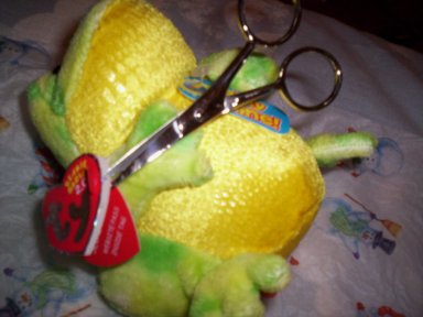 "You will not want to use this procedure on valuable BB 2.0s." Bean Watcher Tag: See Hang Tag or Heart Tag . Tag Protectors: See Locket Tush Tag: The Tag found on a Ty products bottom or tush (behind). Canadian Beanies have two Tush Tags. 2006 Tush Tags at Ms. Janie's. Tush Tags at Collectible Treasures. Ty$: Ty$ known as Ty dollars is virtual money earned by playing games on the Ty Girlz web site. The Ty$ virtual money can be spent in the virtual Mall there. Ty Girlz: The Ty Girlz range from Ty known as Ty Girlz are dolls made of fabric with no "beans" or plastic pellets, that are found in many other Ty products. In the real world, their hair that feels real and is combable. Each doll stands 14" tall and has her own unique look. Ty Girlz whose outfits are sewn to their bodies, have virtual lives online. Ty Girlz online virtual world is where doll owners can interact with other owners of Ty Girlz dolls. Each Ty Girlz doll has a secret code inside their hang tag than can only be used by the initial owner who logs in with it on the interactive site. Their online virtual world has a virtual home, "My Room" and a Mall. In the virtual Mall there is a Bank with Ty dollars, Ty$. The Mall shops include the Bank, Threadz, the clothing store, Salon Sassy, the hair salon and Diva Decor, the furniture store. Virtual clothing, accessories and furniture can be purchased in the stores. New virtual hair dos can be had at the salon, no appointments are neccesary. The site also has a Chat Club and an Arcade as well.